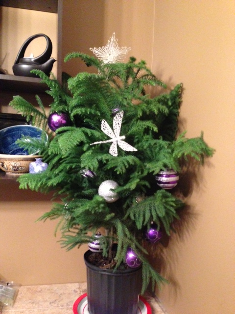 I spent some time tonight digging out ornaments and decorations and starting to get the tree ready… this year I have a small, live, Norfolk Pine… usually George would set up the tree, put on the lights, and after I had decorated it, he would hang silver tinsel on it, one piece at a time… if I was helping I would toss handfuls at the tree… what fun we had…
