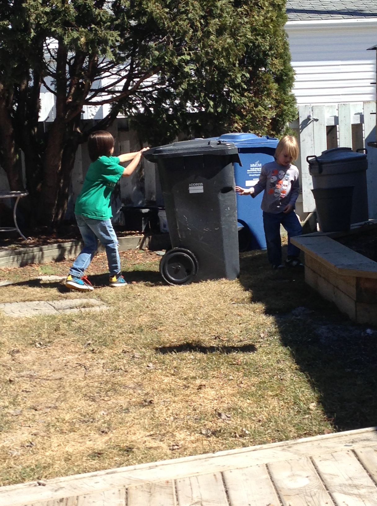 the boys were over for a while and built a lair with garbage/recycling/yard waste containers and anything else small that they could move… they also put a few things in the garbage for me…