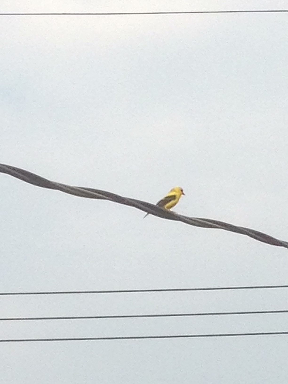 tonight while speaking with my daughter on the phone, I had to go see who was making all the noise in the back yard… Mr Goldfinch was singing to Mrs Goldfinch while she was having her dinner…