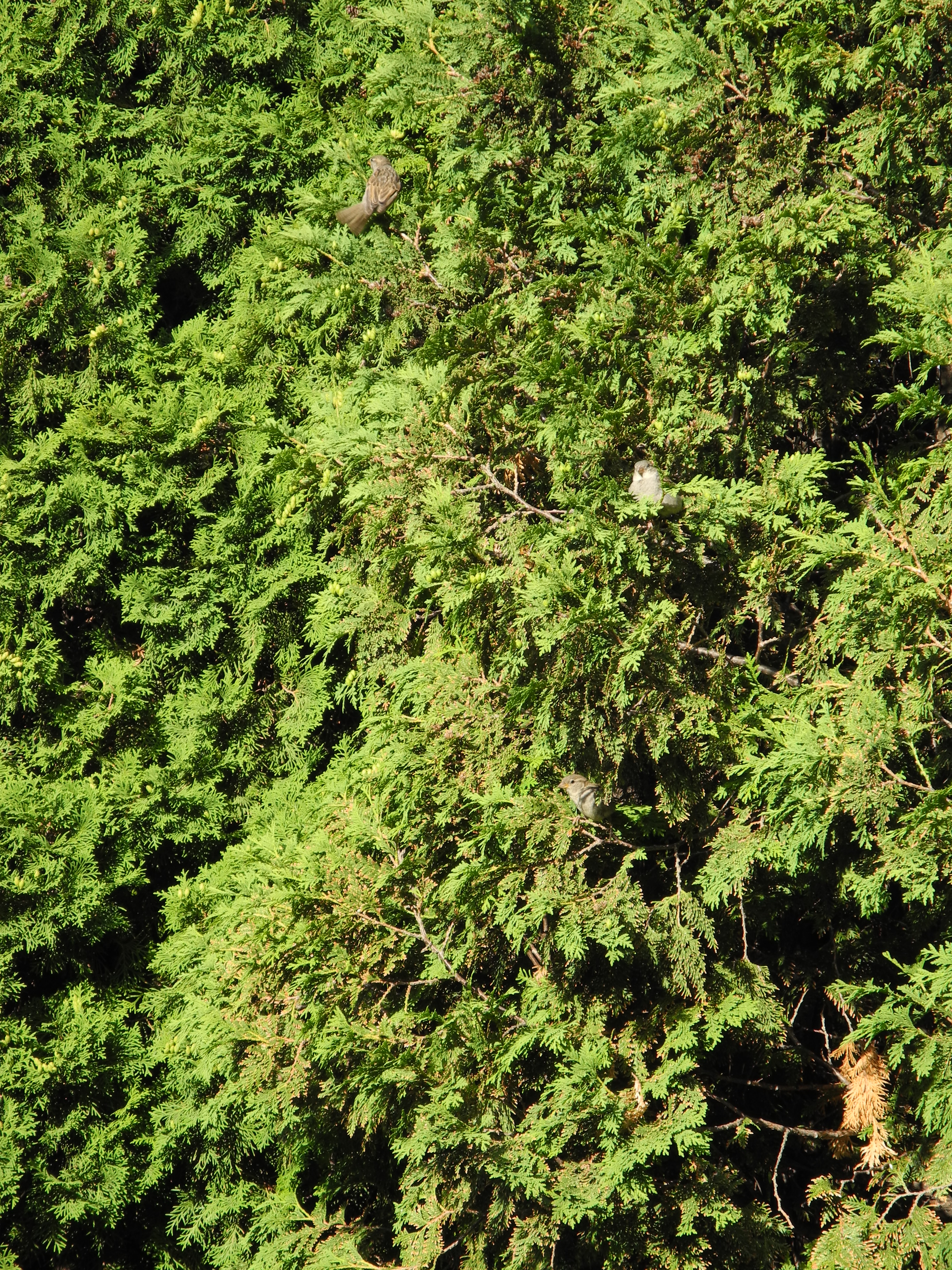 sparrows sitting in the cedars...