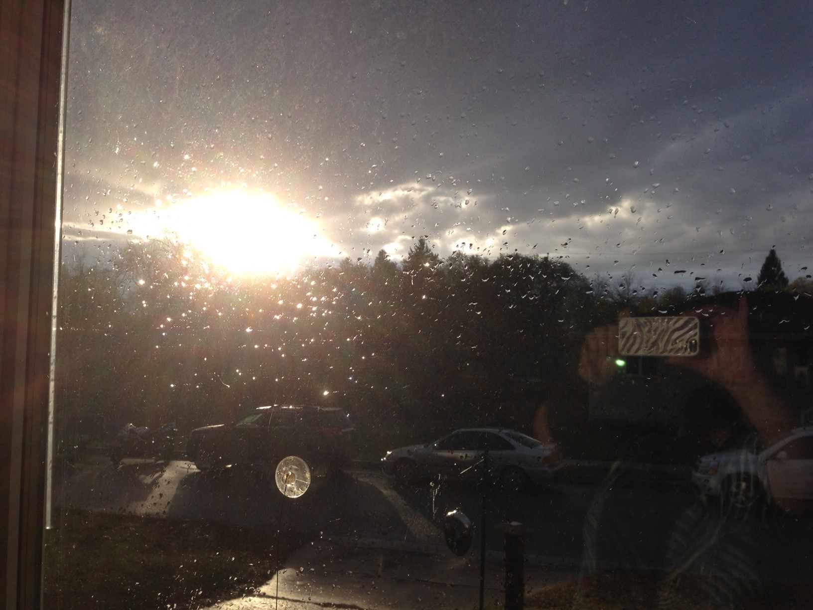 blustery on the way home and after getting in the house looked out the front window to see the sun coming through the clouds even as it was raining… took a few pictures…