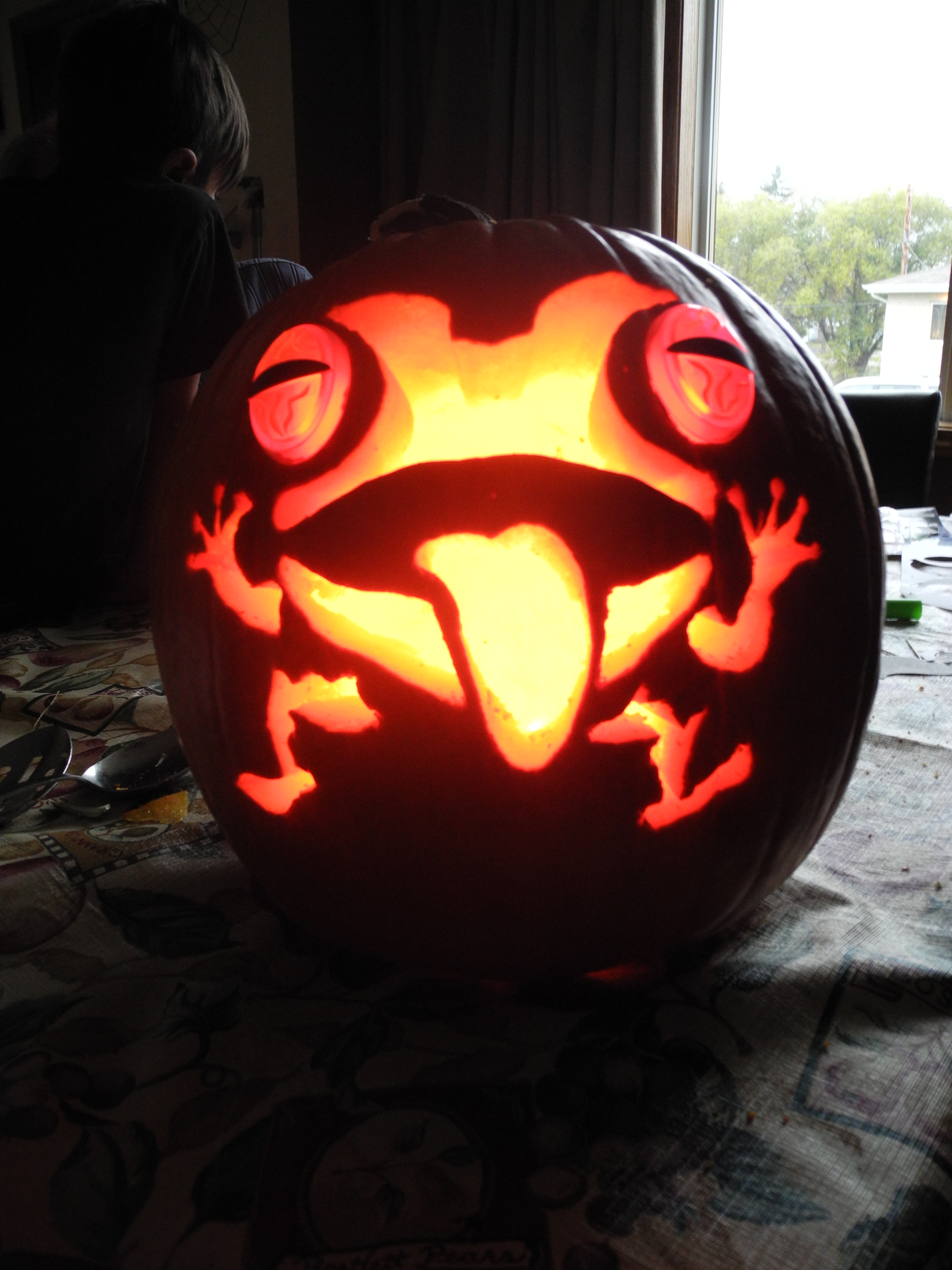 usually the kids would be over and we would carve them together… this has been a tradition since the 13 year old was a little tyke, even though he doesn’t always get to participate… Grandpa loved to carve the pumpkins and each year they got more and more intricate…