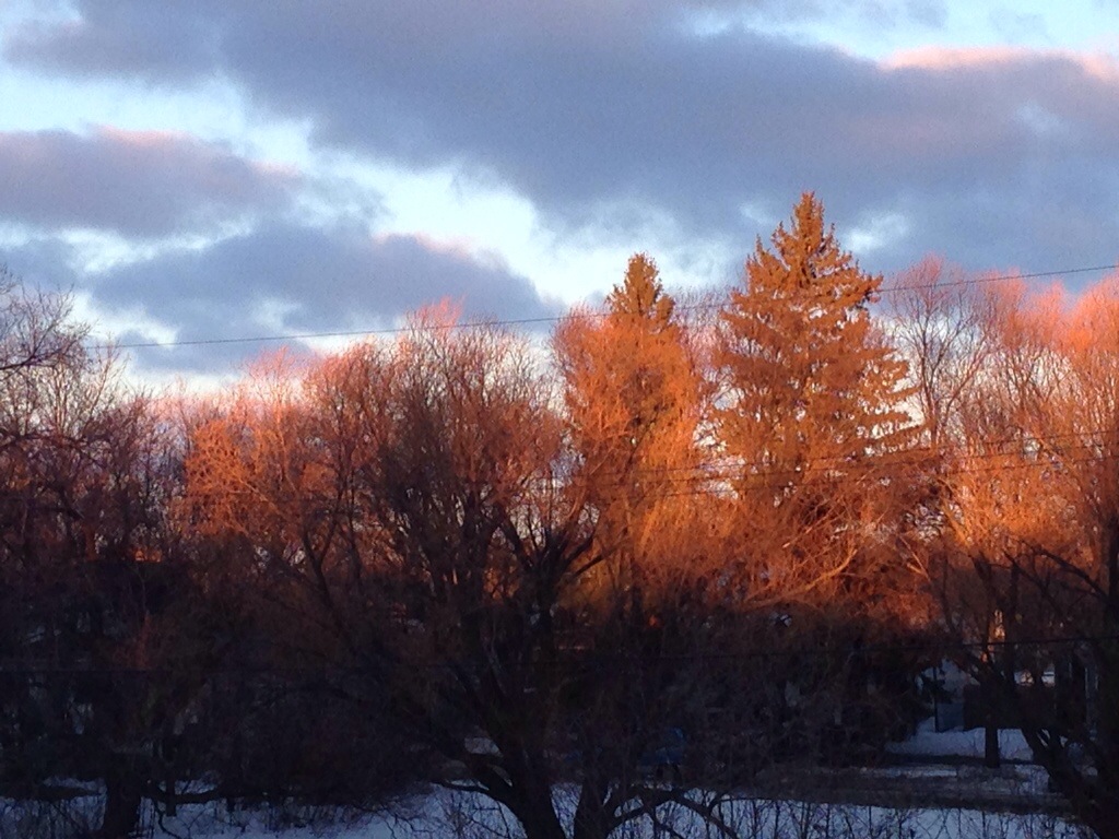 got a great shot of the sun shining on trees across the street this morning as I waited for my ride…