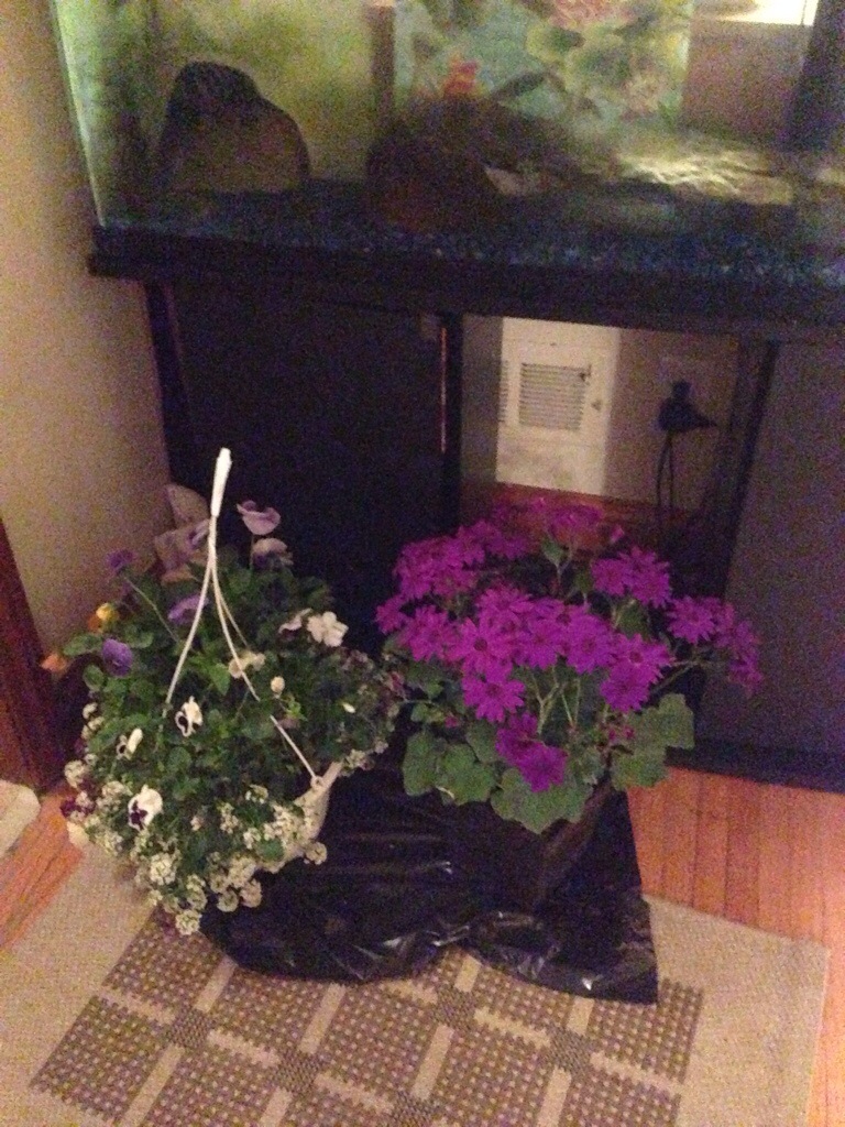 the weather has been kind of cool and rainy so I have brought in the plants… they are now living in front of the fish tank, lol…