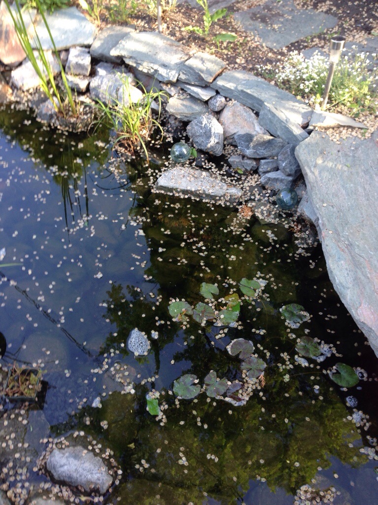 sadly, the water level in the pond is falling