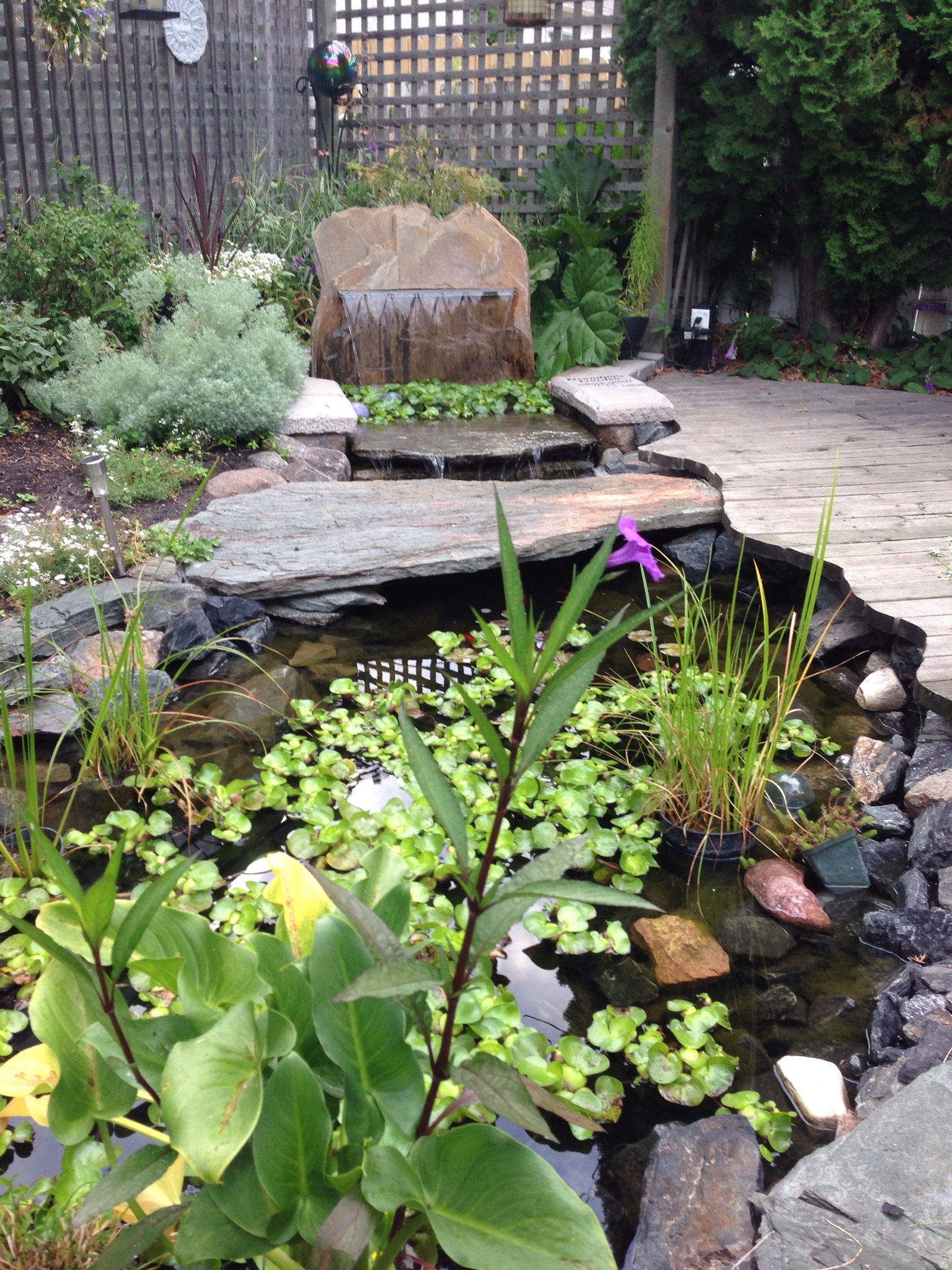 this morning I got a picture of a flower on one of the plants in the pond… don’t know what it was and it was a lovely surprise because I wasn’t expecting any flowers…