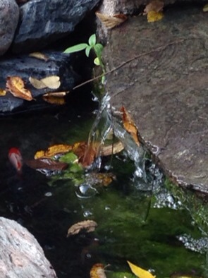 she helped me clean out the freezer and on our way to the garbage I realized that my pond guy had been and had the water running again and I was very happy…