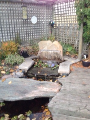 very excited when I walked into the yard and saw the water falling beautifully… this is strange because usually within a few hours of my pond guy being here the water starts to get clumpy, with algae obstructing the flow…maybe it is too cold for algae, lol…