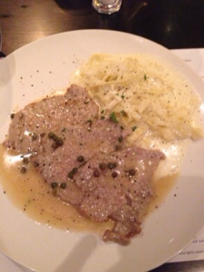 veal with lemon and capers, fettuccine Alfredo on the side… the picture doesn’t do it justice… sadly the wait person and I had a slight communication problem but she was quick to redo the meal so that I got this one… it was amazing and I ate every scrap on my plate… should have taken a picture of the after… would have licked it but didn’t want to embarrass my friends, lol…