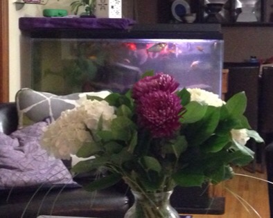to top off the day I brought home my beautiful flowers and put them on the coffee table…