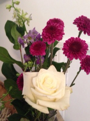brought home my flowers after work… trimmed the stems and rearranged them into two vases… one for upstairs…