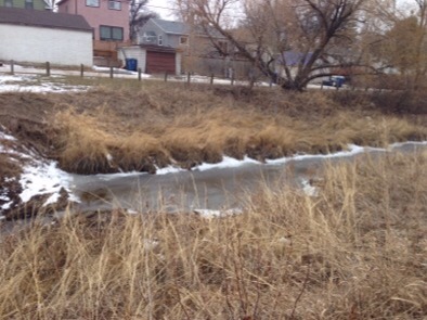 and the day ended as I walked home along the street and got a few pictures of the creek slightly frozen over…