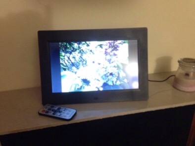 added pictures to the new frame and finally got it set up in the living room… still thinking I might want the 14″ one instead of this 10″ one so I haven’t hung it on the wall just yet…