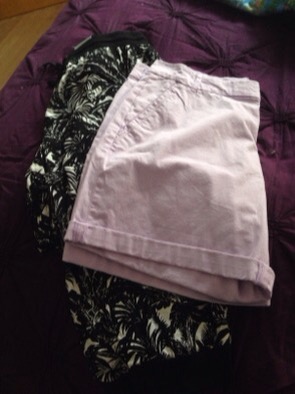 tried on lots of clothes but only found two things I liked… a nice pair of soft pants to wear around the house and some cute purple shorts…