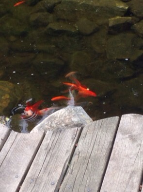 the fish are quite skittish… hiding under the bridge most of the time and rushing back there if they are elsewhere and hear any noises… even a car driving down the lane… odd but we will see what happens as the weather warms up and they get used to the space…