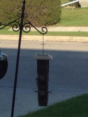 early this morning a very chatty bird was at the front feeder… didn’t get a good shot because it was dancing from perch to perch… think it might have been some type of small woodpecker