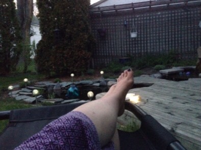 laying in my swing by the pond enjoying the sound of the water running down and over the rocks…
