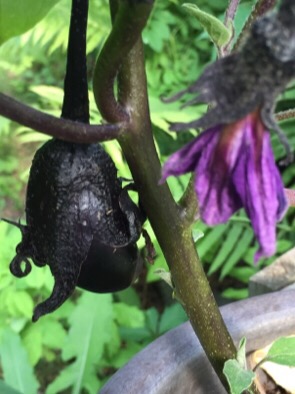 big girl pants, eggplant, garden, mandevilla, rain, rainbow, storm
