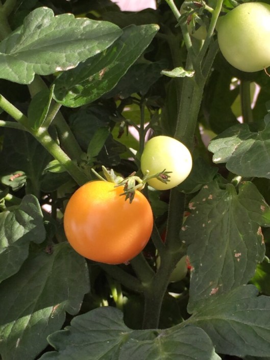 spotted two of the tiny tomatoes starting to turn colour, oh yay!