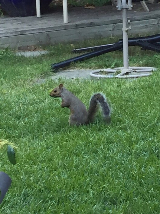 besides this one, which practically joined me in my chair, there were red squirrels, bluejays, chickadees, sparrows, butterflies, dragonflies, bumblebees, with some wasps and mosquitoes….
