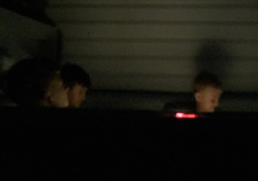 snack of popcorn and a bit of tv before bedtime for the two littlest, with the other one ensconced in the basement…