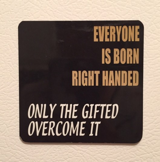 I watched my grandsons carefully as they began grabbing things, hoping that one might be left-handed… so wanted to be able to teach someone some of the tricks to getting through life as a leftie…