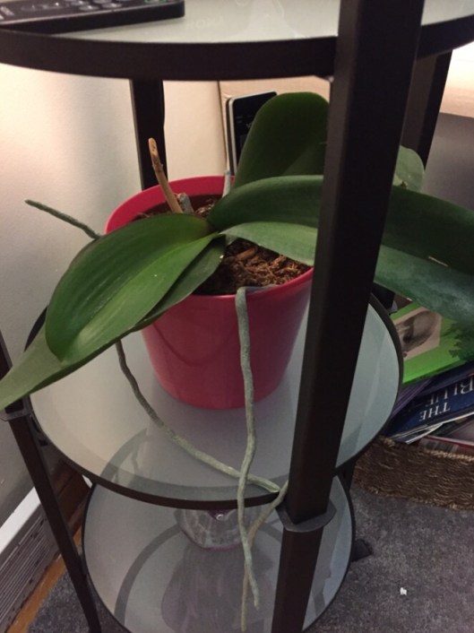 have been doing a bit of reading on orchids and discovered that the roots hanging out of the pot were not as healthy as I thought… apparently they might need to be repotted…