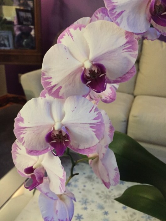 this morning I took some pictures of the orchid… it is lasting amazingly well…
