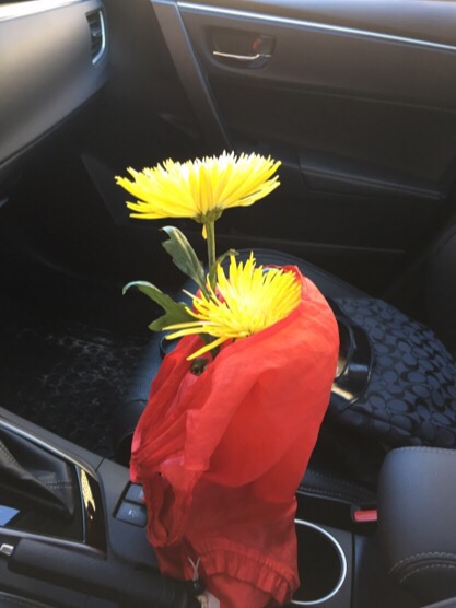 the base was wrapped in one of my cloth bags, in case the person getting them was in the office when I arrived… although they weren’t really hidden, lol… but they were lovely company for me and brightened up the drive…