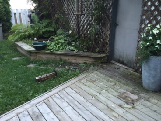 thinking that maybe the raccoons have been over… that bird feeder on the ground was beside the gray planter last night, lol…
