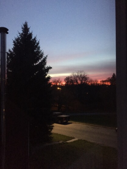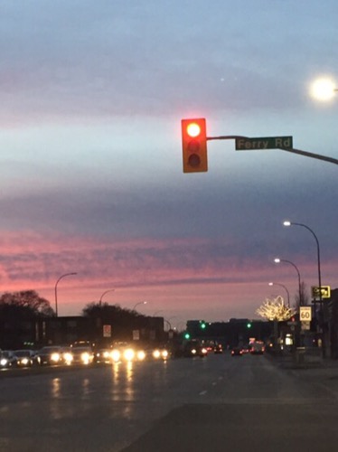 I took this shot at 5:11 on my way home, and it was already getting dark… the sky had a pink cast to it…