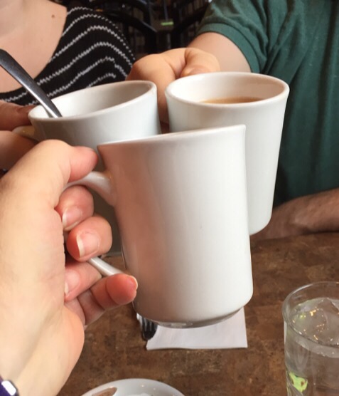 the out-of-town kids have been staying elsewhere but a few days ago they slept over and in the morning we walked to the “A” for breakfast…