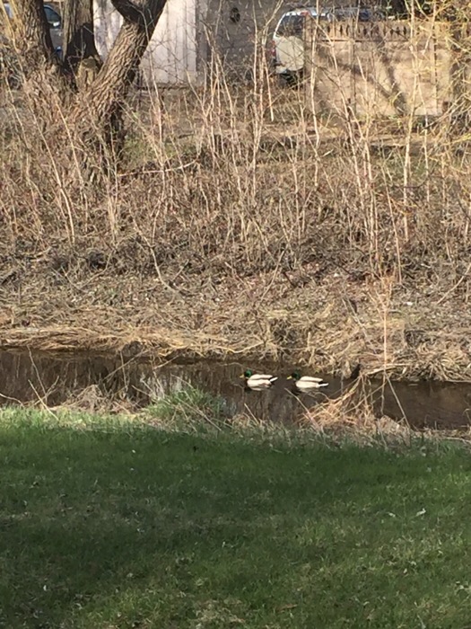 my grandson was with me on the way there… we caught a few Pokémon and saw the mallard couple in the creek… it was a bit chilly because of the wind, but the sun was shining…