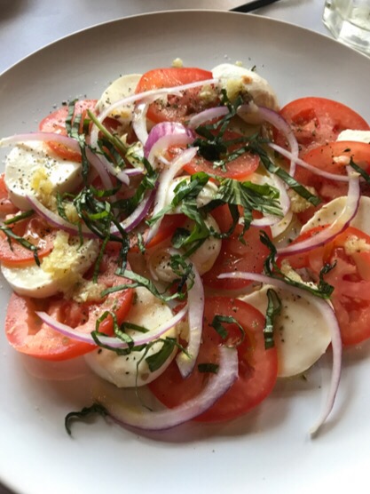 then I had the bocconcini e pomodoro with layers of fresh bocconcini cheese, roma tomatoes, red onion, dressed with extra virgin olive oil, oregano fresh garlic and basil… very tasty… and so pretty…