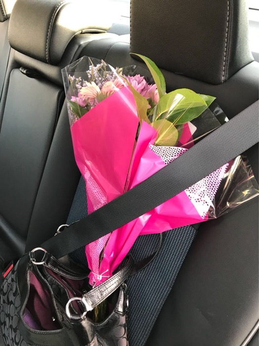 I always giggle as I clip the bouquet into the seatbelt but it really is a great way to transport them…