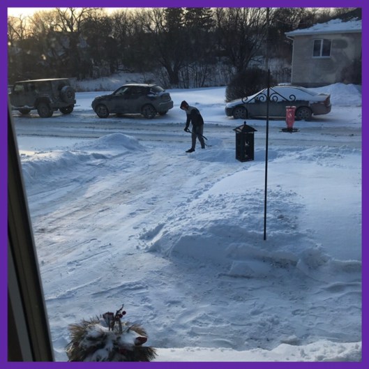 there was a fair bit of snow, but it was light and fluffy… although it was cold, it didn’t take him too long to get is done… he has improved so much since he started doing the job… my beloved, who was very particular, would be proud of him…