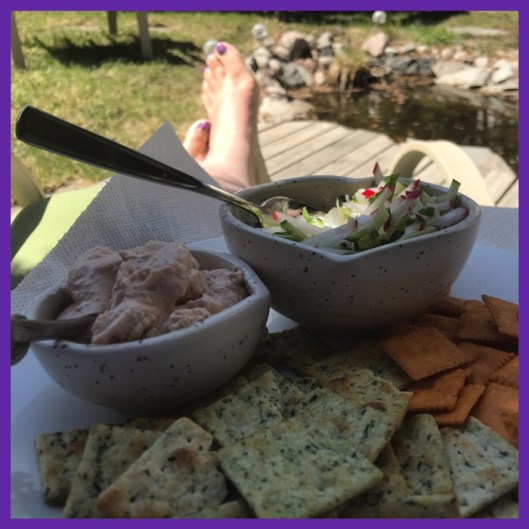 combined a smoked goldeye with cream cheese for a very tasty spread for the two types of crackers I had in the pantry…