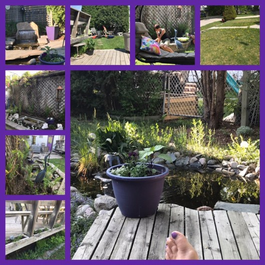 when I woke at 7:25 I went out and set up the cushions on the chairs and loungers, had a smoothie and tea… beautiful morning… arranged for my middle grandson to come and help me in the garden and then spoke with my Ottawa daughter, who was in Kingston…