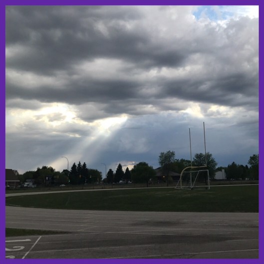this particular picture is from the night we went to a soccer game close to me… the sky that night was a show of great views… in the end the game was cancelled due to lightning… I really liked the sun shining down through the clouds…