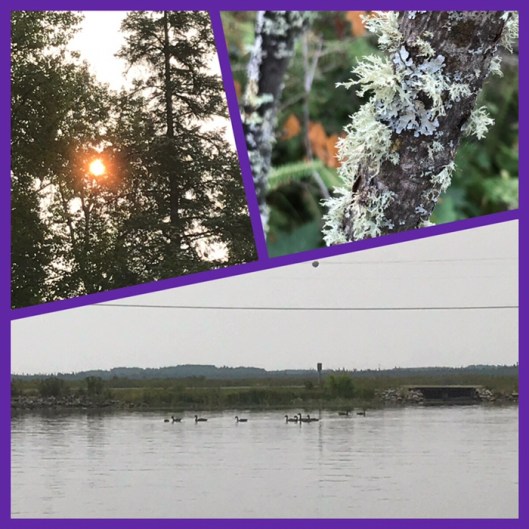 sadly I woke up with a headache which stayed through the whole day… up around eight and relaxed around the campsite… the sun looked cool through the trees and I got a few neat shots of lichen on a branch… saw quite a few geese today when we were down by the water…