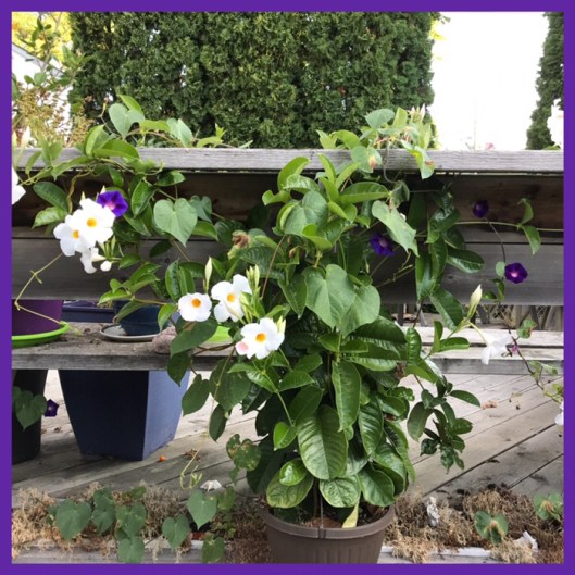 they are blooming in and amongst the mandevilla which is also blooming like crazy…