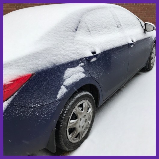 it wasn’t too cold and the snow was still falling gently… I actually enjoyed brushing the car off… which was funny because a man walking by asked if I was having fun… and I said yes, I was… not sure I will feel the same in a month…