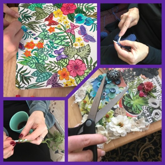 there was knitting, colouring, collage-ing, crocheting, eating, drinking, and lots of conversation
