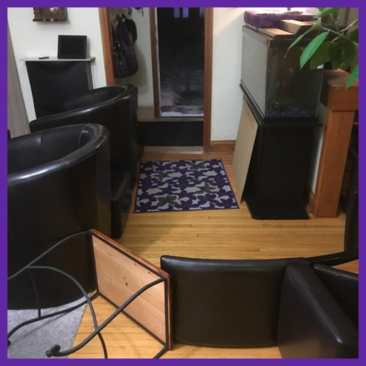 once she was in the dining room, I used chairs to block her in… then I made a path from there out the front door…