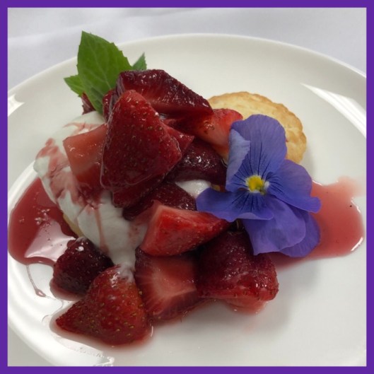 ended the meal with strawberry shortcake, with a purple flower on it… sugar scone, macerated strawberries, coconut whipped cream, hibiscus and ginger syrup… oh my…