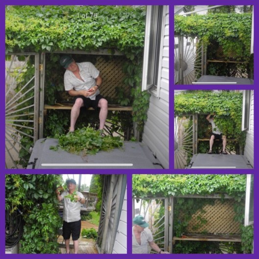 beloved, big girl pants, garden, hot tub, tidy, trimming, virginia creeper, widow