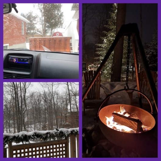 they don’t allow photos on site so these are a few I took: leaving home as the snow fell, the view as we stood in line to get our bracelets, and a picture my daughter took as we were leaving…