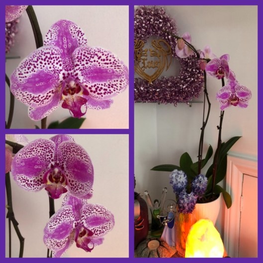 orchid blooms are looking lovely and I picked up an orchid on sale at Save-On-Foods that is now living in the bedroom…
