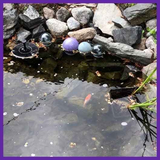 the pond looks much better and I decided to try catching the fish in the tank and moving them outdoors… this isn’t a job I have ever done, as usually my beloved did it, with the help of the grandkids… since he’s been gone, my son-in-law has taken over this task, lol…