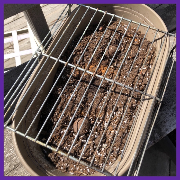 I used a cookie rack over top of the flower eggs to keep the squirrels out, lol… wish I had more for the dahlias, but hopefully they won’t be too interesting for the critters…